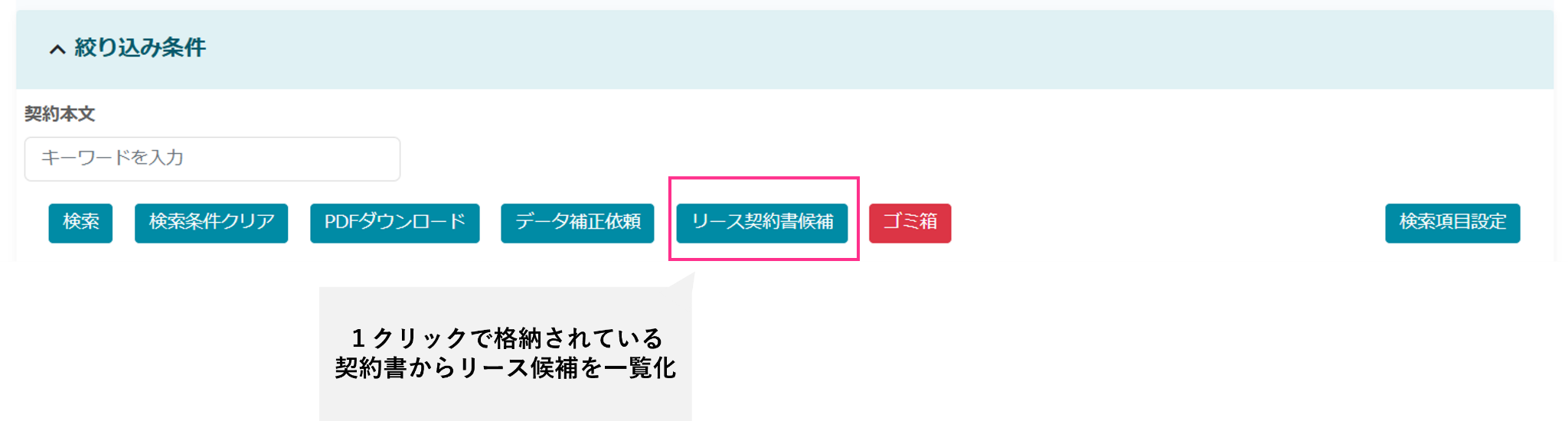 この機能により、担当者が契約書を一枚ずつ目視で確認する手間が大幅に削減され、新基準対応に向けた法務・経理・財務部門の業務負荷を軽減します。