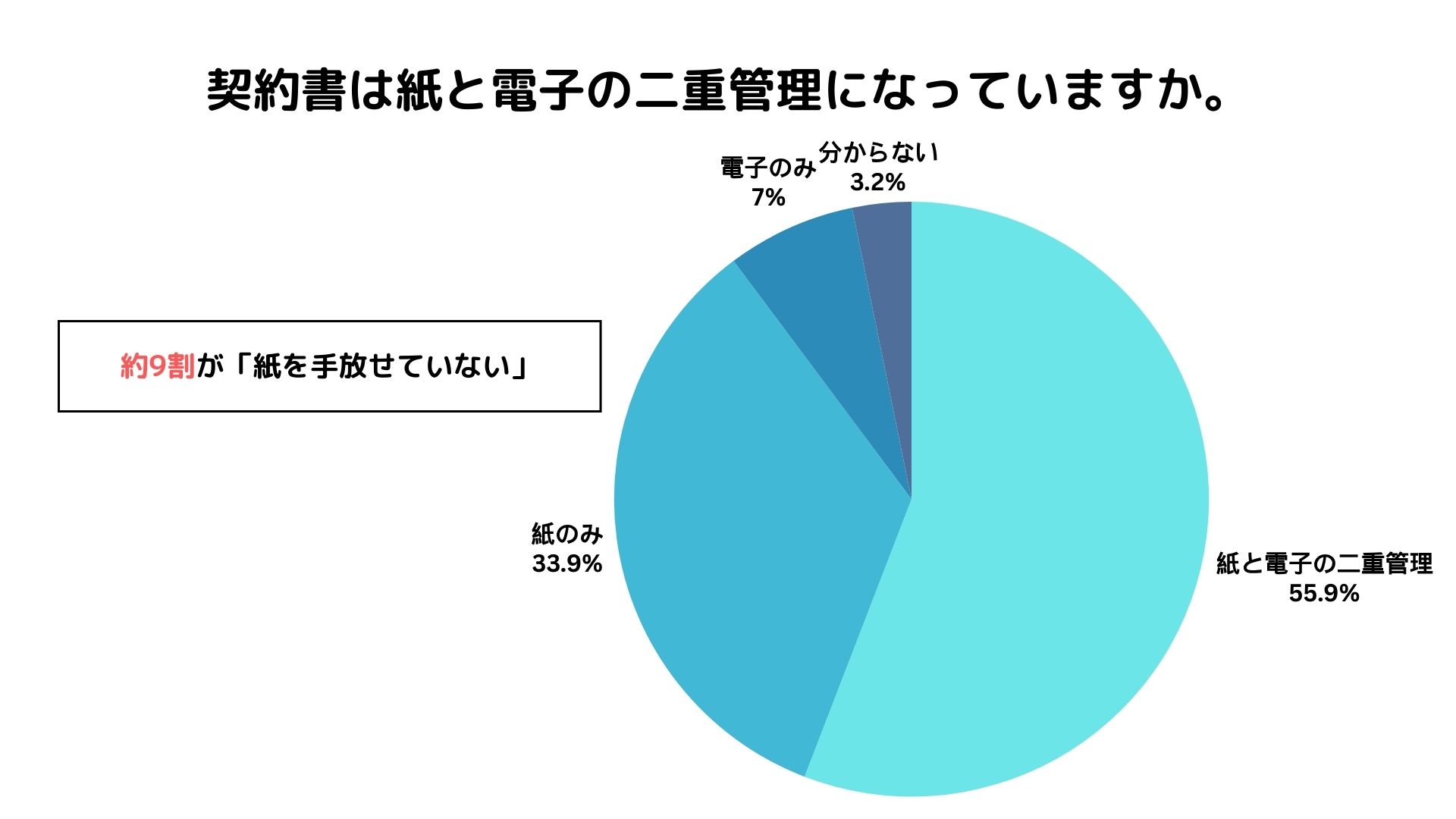 ①約9割が「紙を手放せていない!」契約書の所在確認に時間がかかった経験は約7割!
