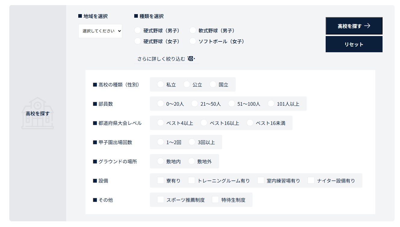 知名度や人づての情報だけでなく、中学球児や保護者が自分の意思で「自分に合った高校」をより詳細に検索することが可能になりました。これまで知らなかった新たな高校と出会うチャンスを創出します。